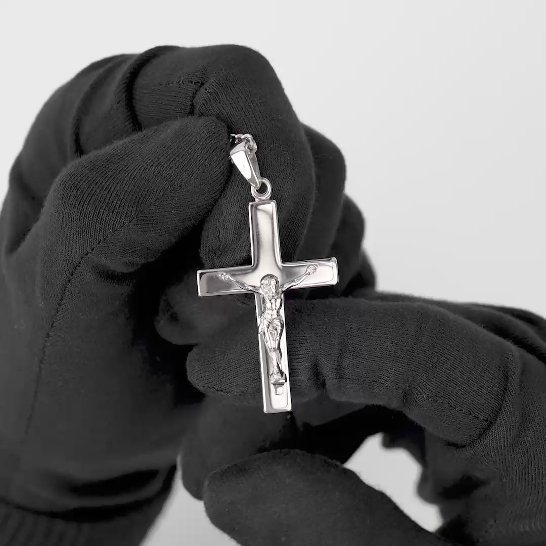 Unser Kreuz-Set besteht aus massivem 925 STERLINGSILBER und wurde mit einer 1 Mikron dicken Schicht aus Rhodium beschichtet.