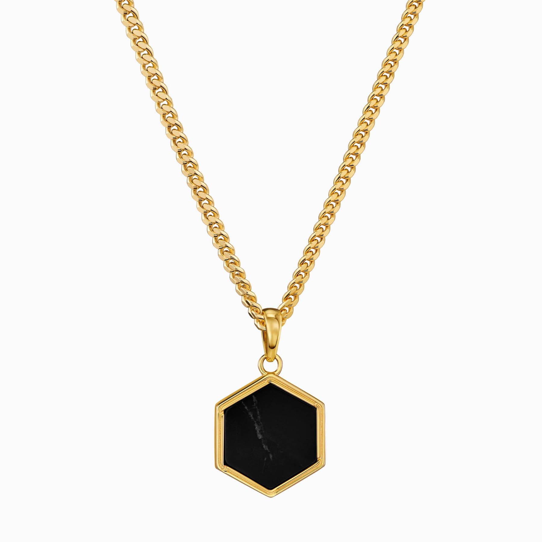 HEXAGON BLACK MARBLE NECKLACE 925 SILVER 18 CARAT GOLD PLATED
