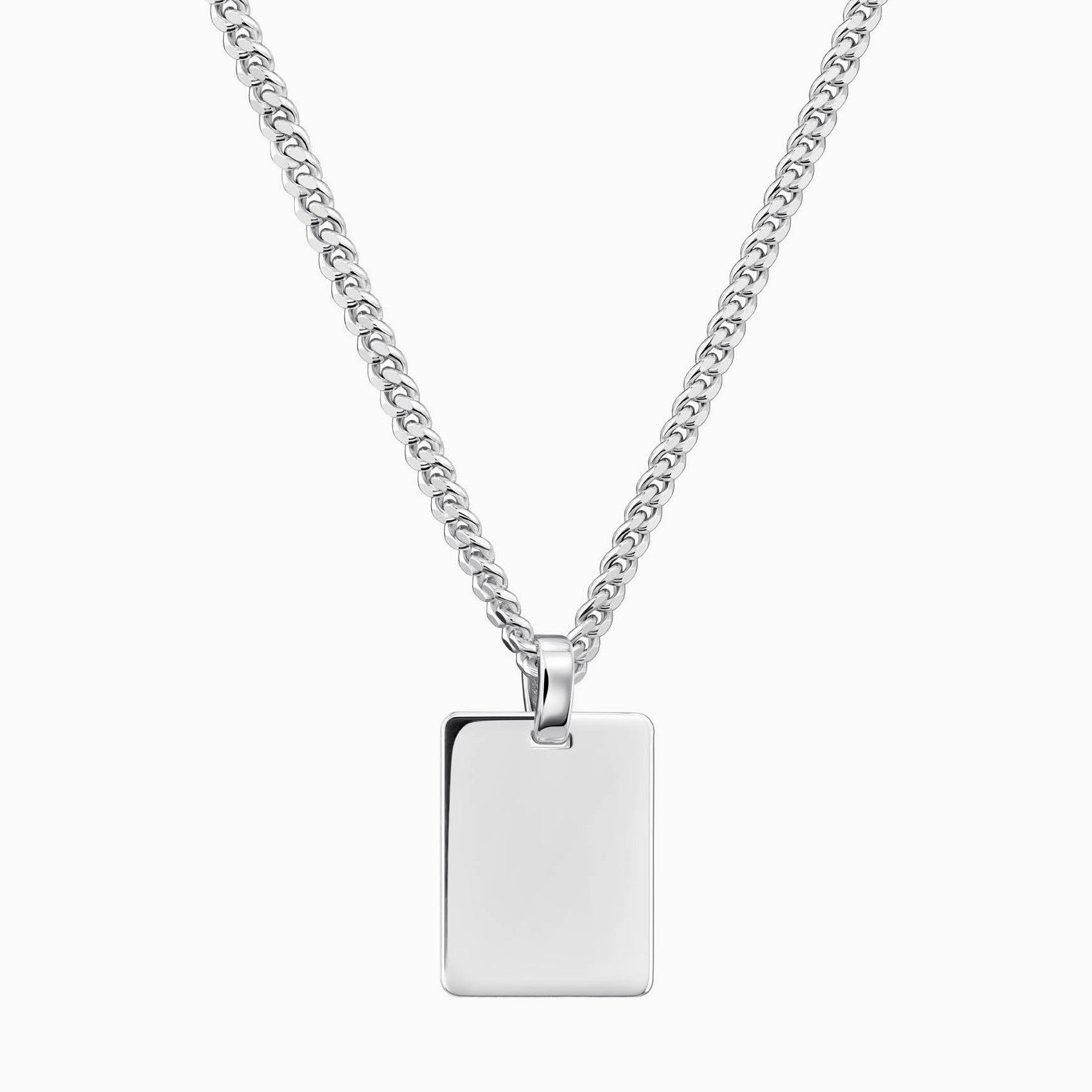 ENGRAVING PLATE RECTANGLE NECKLACE 925 SILVER RHODIUM PLATED