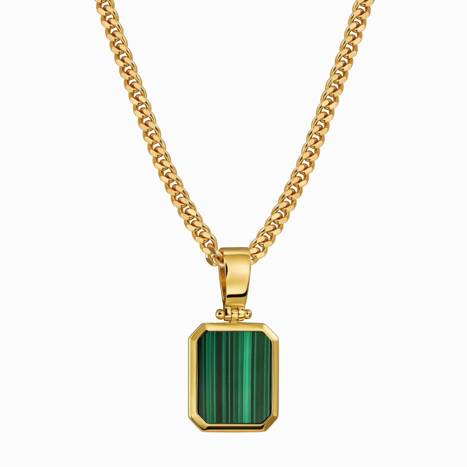 MALACHITE OCTAGON NECKLACE 925 SILVER 18 CARAT GOLD PLATED